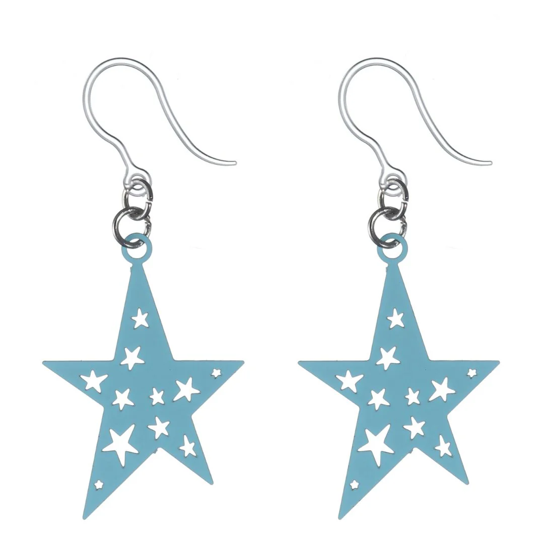 Rock out with our Punk Star Dangles Earrings! Made for sensitive ears, these earrings feature hypoallergenic plastic hooks for all-day comfort. Say goodbye to irritation and hello to style with these quirky and playful earrings.